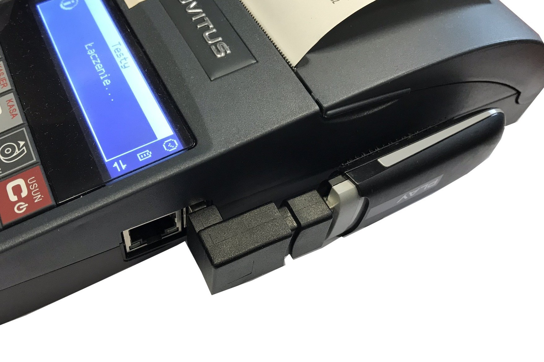 Modem 3G do zewnętrznego portu USB kas i drukarek fiskalnych online Novitus. Wersja dedykowana dla kasy Nano Online oraz Deon Online sprzedawana jest w komplecie ze złączem konowym oraz rzepem przemysłowym do podłączenia modemu do złącza USB oraz zamocowania go na ściance kasy. Wersja dedykowana do kas Mała Online, Sento Online, Soleo Online oraz drukarki Bono Online sprzedawana jest w komplecie z przewodem USB oraz rzepem przemysłowym pozwalającymi na swobodne podłączenie modemu oraz przymocowanie go do obudowy. W komplecie instrukcja podłączenia modemu.