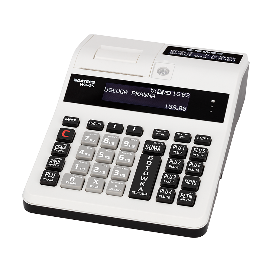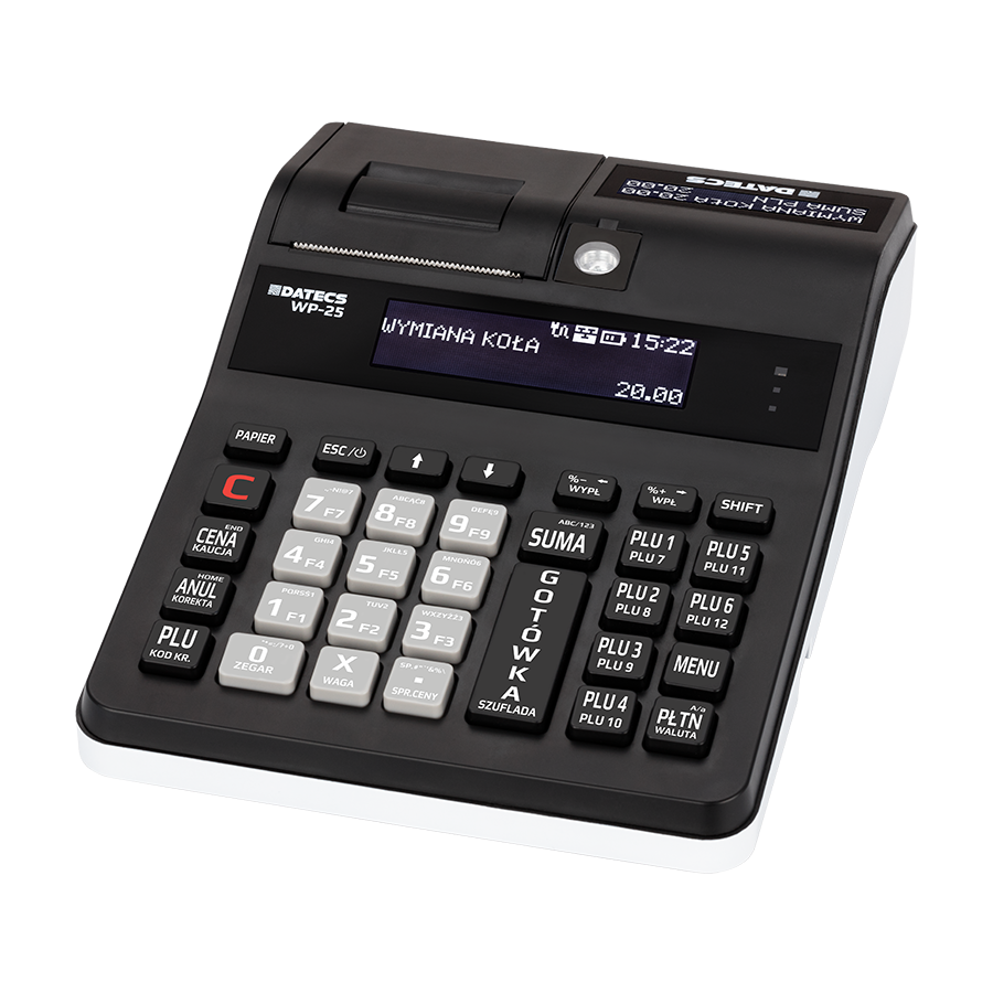 Kasa fiskalna online DATECS WP-25 została zaprojektowana do pracy w małym punkcie sprzedaży wszędzie tam gdzie miejsce jest bardzo ograniczone. To najmniejsza kasa stacjonarna w naszej ofercie wyposażona w wydajną baterię litowo-jonową. Potwierdzony badaniami zakres temperatury pracy pozwala użytkować urządzenie przy -5°C. Ergonomię pracy zapewniają duże klawisze oraz czytelny trzyliniowy wyświetlacz, umożliwiający komfortową obsługę klienta, przeglądanie zawartości paragonu oraz kontrolę statusu kasy – stan naładowania baterii, połączenie z siecią, data i godzina. Natomiast system wymiany papieru typu „WRZUĆ I PRACUJ” sprawia, że obsługa kasy jest jeszcze prostsza nawet dla początkującego użytkownika.