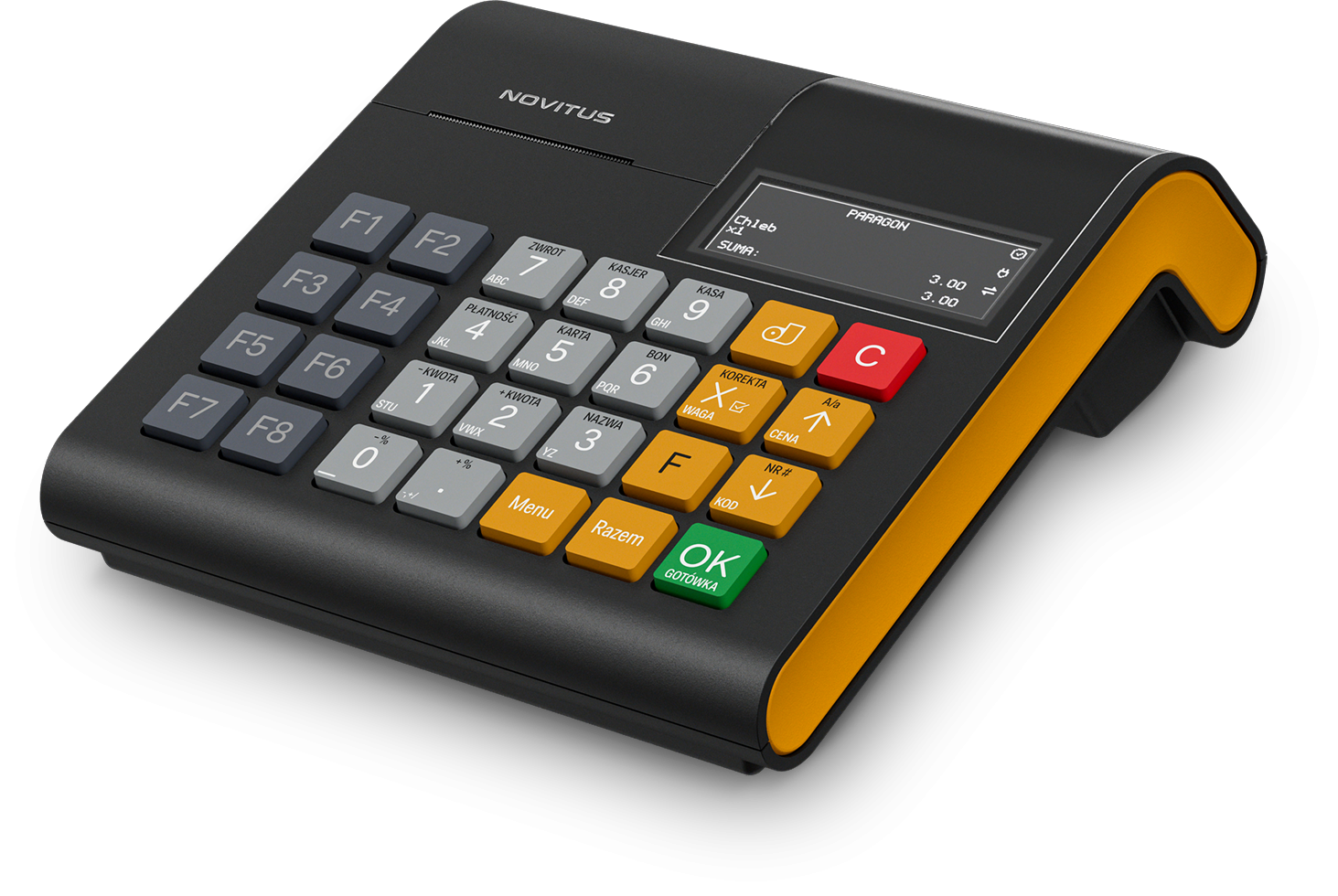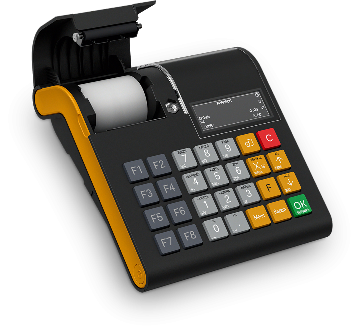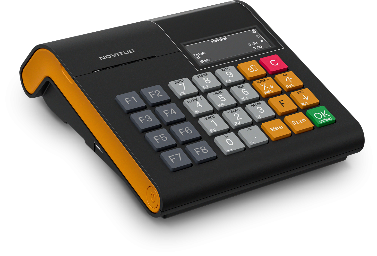 | wyświetlacz kasjera: | graficzny, podświetlany, czarno-biały, LCD, 192 x 64 piksele |